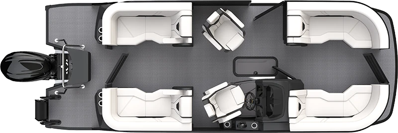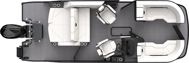 The Quad Lounge layout features four comfortable lounge areas positioned at each corner of the boat, perfect for relaxing with family and friends while enjoying the water.